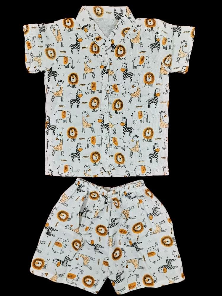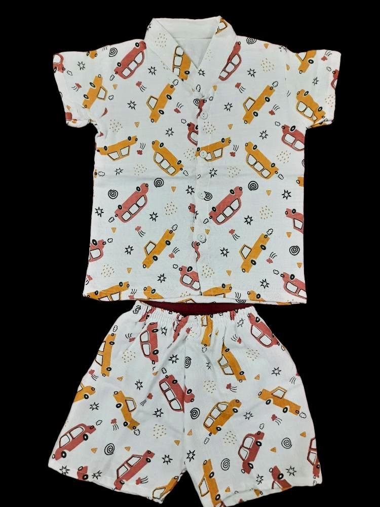 Baby Boys Cotton Printed Collar Shirt & Shorts Set (1-2yrs)(Pack of 2, Front-Open)