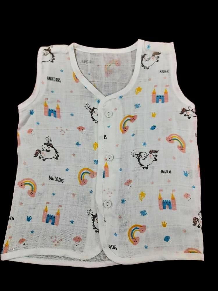 Add a touch of fun to your baby’s wardrobe with this pack of 5 unisex printed sleeveless tops. Made from 100% breathable cotton, these tops are gentle on delicate skin, lightweight, and perfect for everyday wear. The front button opening makes dressing quick and hassle-free, while the charming prints bring extra cuteness.