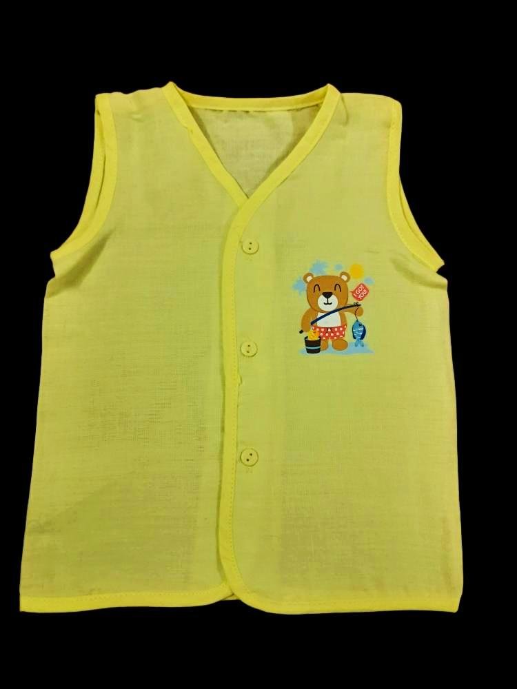 BABY004 – Soft 100% cotton sleeveless tops in 5 cheerful colors. Front button closure for easy dressing. Unisex design, perfect for daily wear. Pack of 5.
