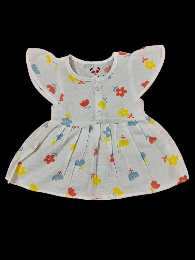 Dress your little one in comfort and style with this pack of 3 cotton frocks featuring adorable all-over prints on a soft white base. Designed with flutter sleeves and a gentle, breathable fit, these frocks are ideal for everyday wear, outings, or special occasions.
