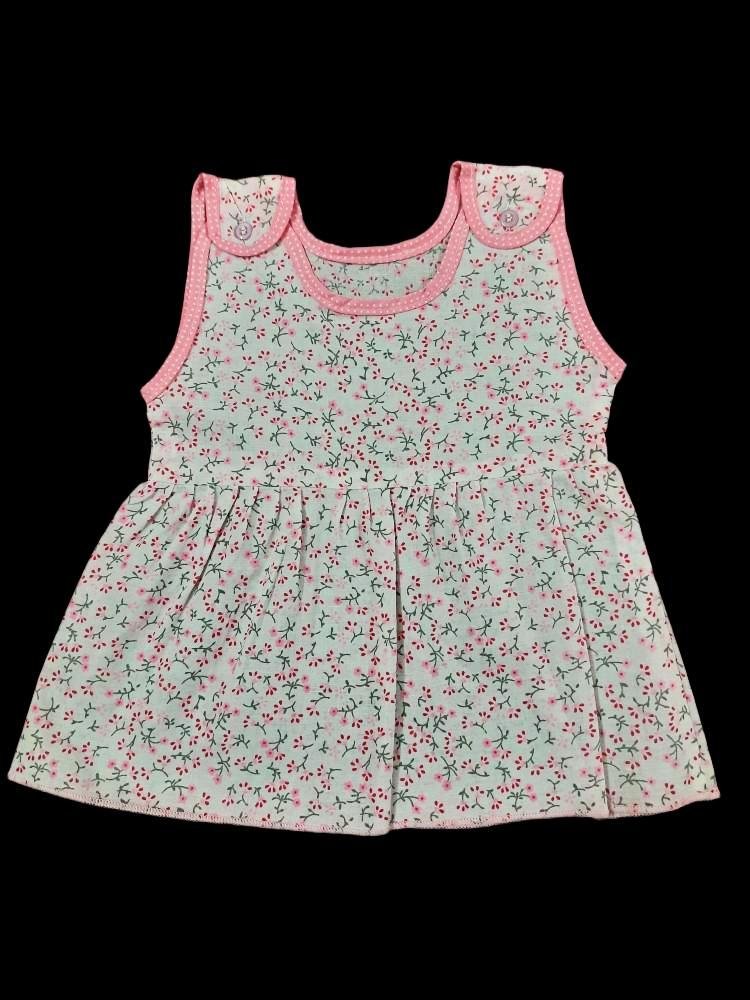BABY018 – Beautiful cotton frocks with vibrant all-over floral prints. Shoulder-button opening for easy dressing. Perfect for baby girls aged 0-6 months. Pack of 3.