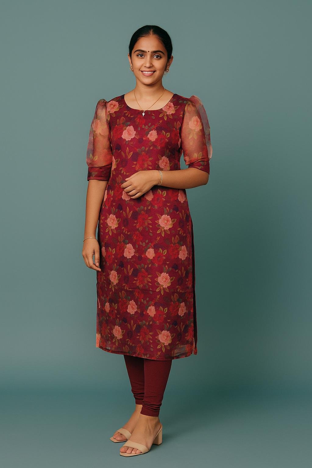 WMEN0043 – Elegant organza women’s top with beautiful floral prints and premium stitching. Designed for comfort and style, available in sizes XS–XXL.