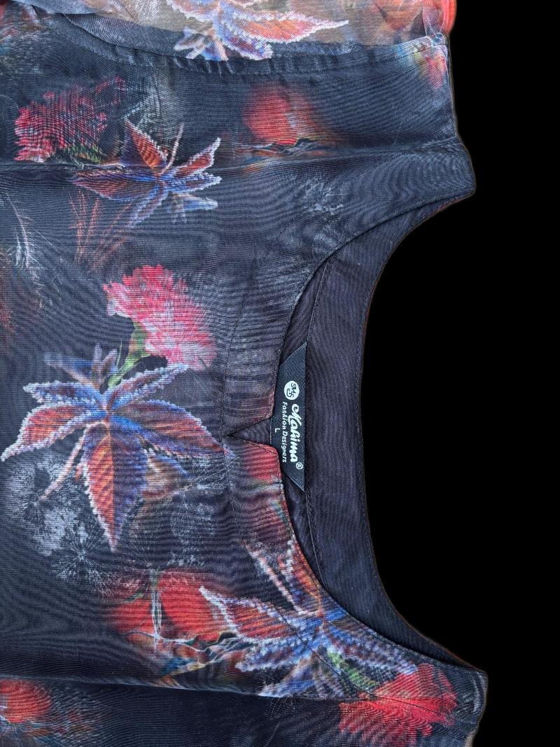 WMEN0048 – Elegant organza women’s top with beautiful floral prints and premium stitching. Designed for comfort and style, available in sizes XS–XXL.