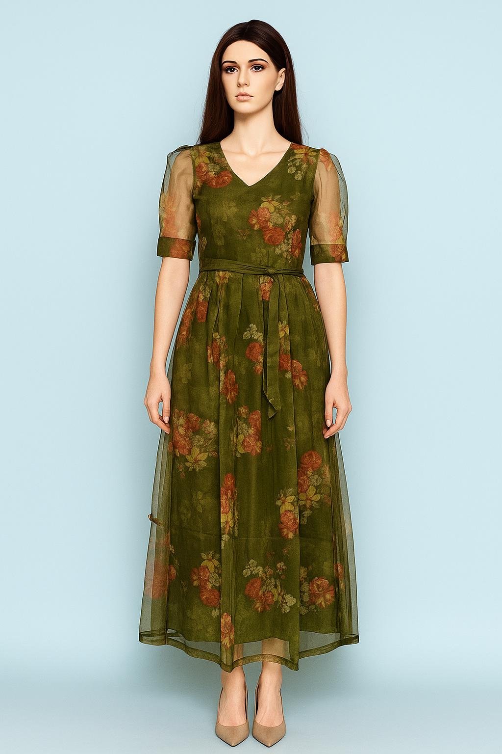 WMEN0053 – Elegant organza umbrella top with V-neck, elbow sleeves, and premium floral prints. Comes with soft lining and tie-up ribbons at the waist. Sizes XS–XXL.